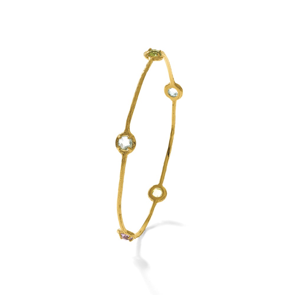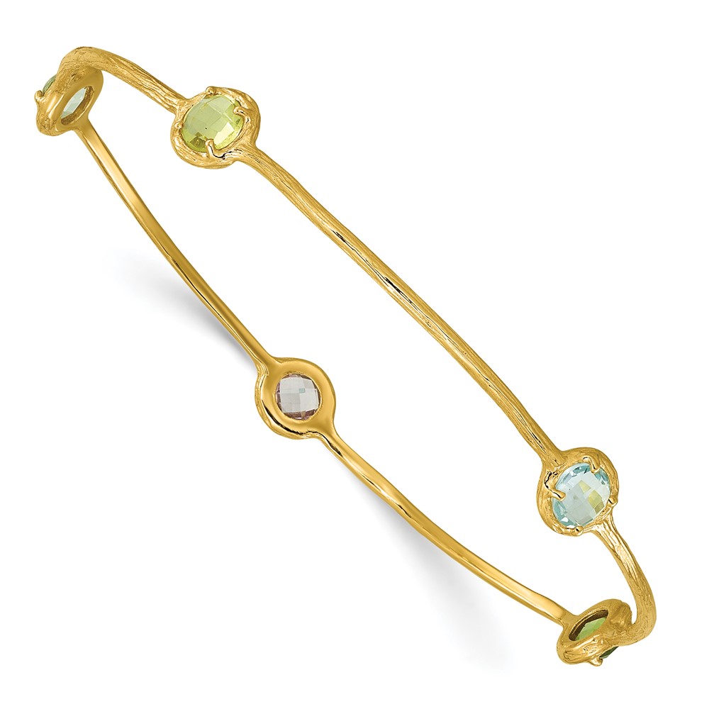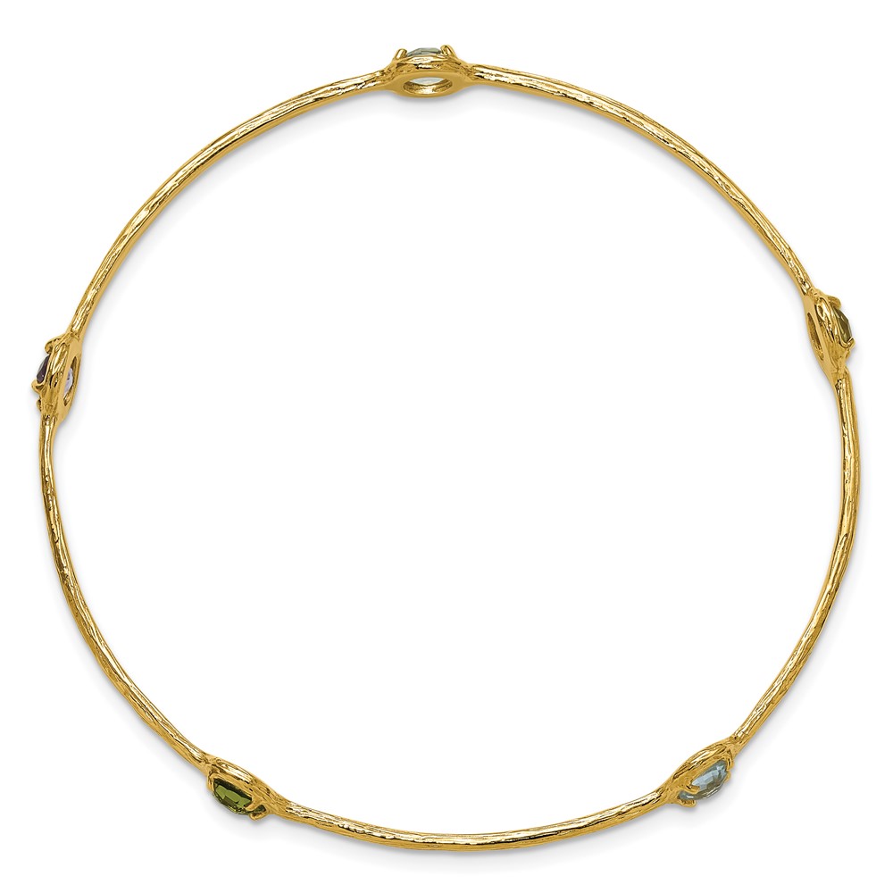 Herco Sterling Silver Rhodium-plated and Gold-tone Polished Beaded Cuff Bangle