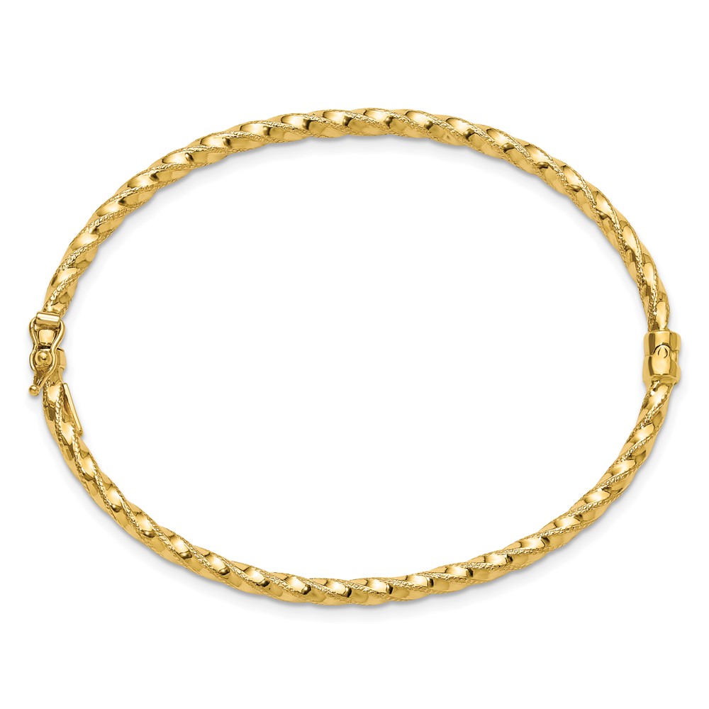 Leslie's 14K Polished/Textured and Twisted Hinged Bangle