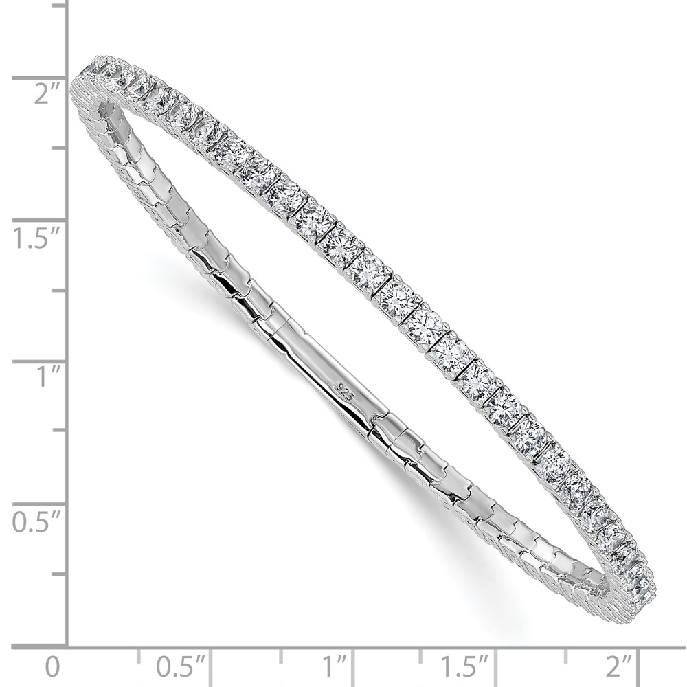 Sterling Shimmer Sterling Silver Rhodium-plated 3mm CZ 52 Stone 7 inch Flexible Bangle Bracelet