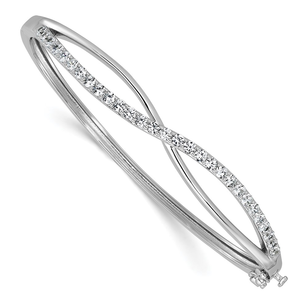 Cheryl M Sterling Silver Rhodium-plated Polished CZ Infinity Hinged Bangle