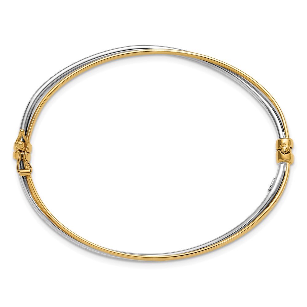 Leslie's 14K w/Rhodium Polished/Diamond-cut Twist Hinged Bangle