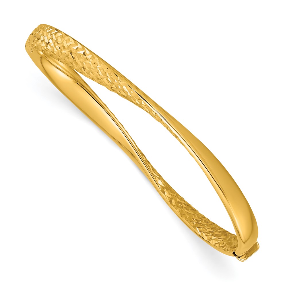 Herco 18K Polished Twisted and Diamond-cut Hinged Bangle