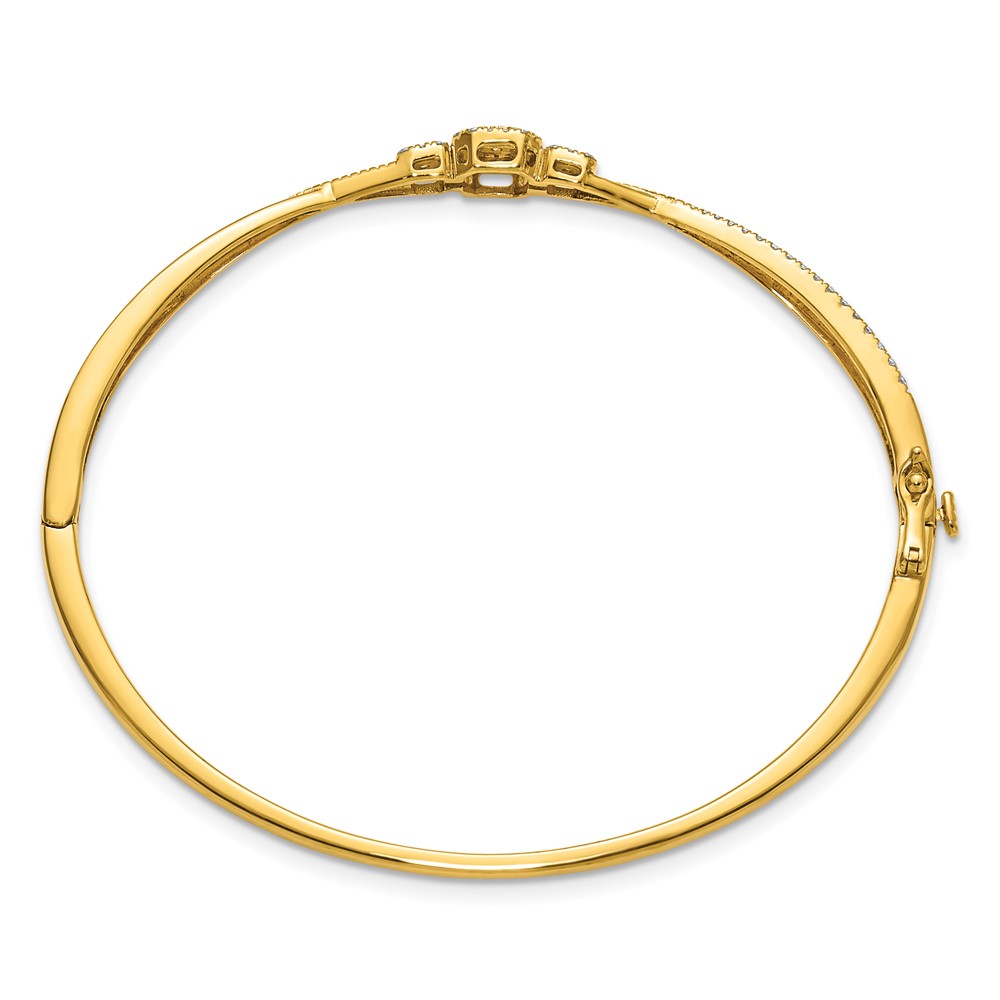 14K Polished and Textured Complete 1/2 carat Diamond Fashion Hinged Oval Bangle Bracelet
