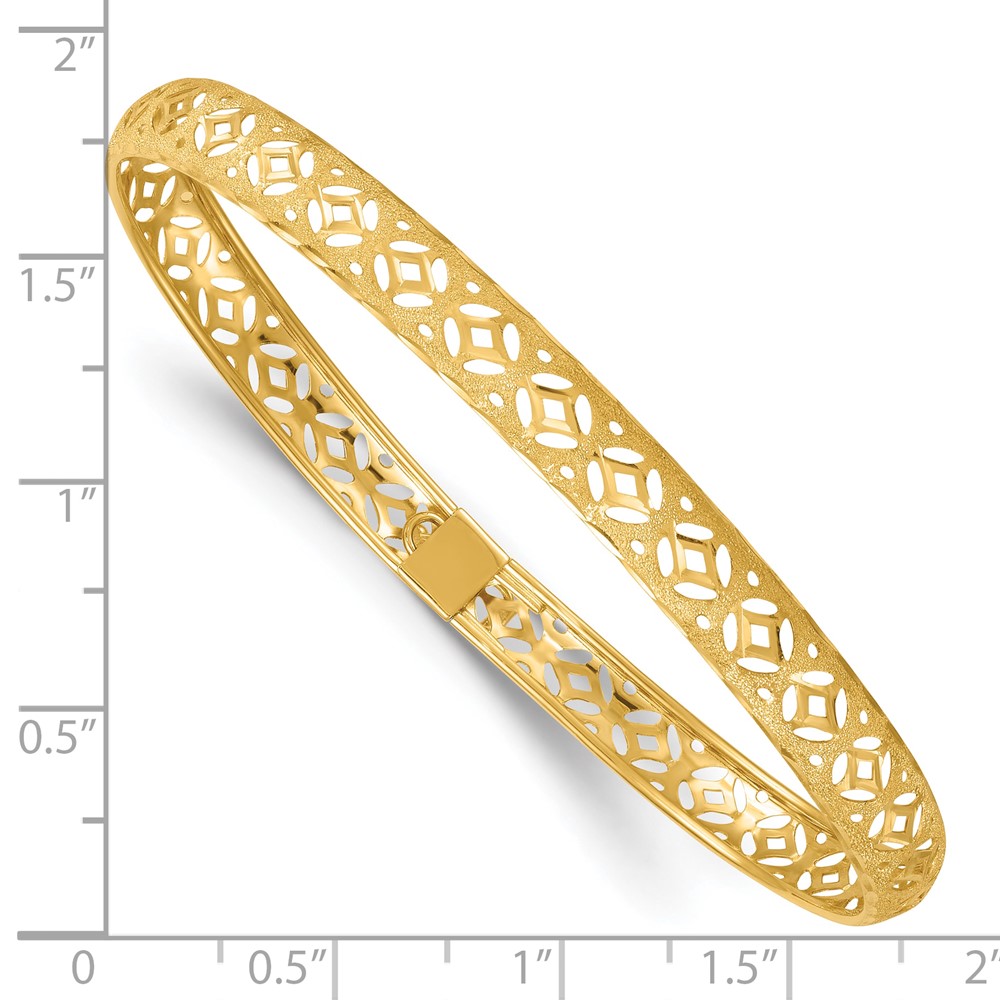 14k Polished Laser and Diamond-cut 6.15mm Fancy Pierced Design Flexible Oval Bangle Bracelet