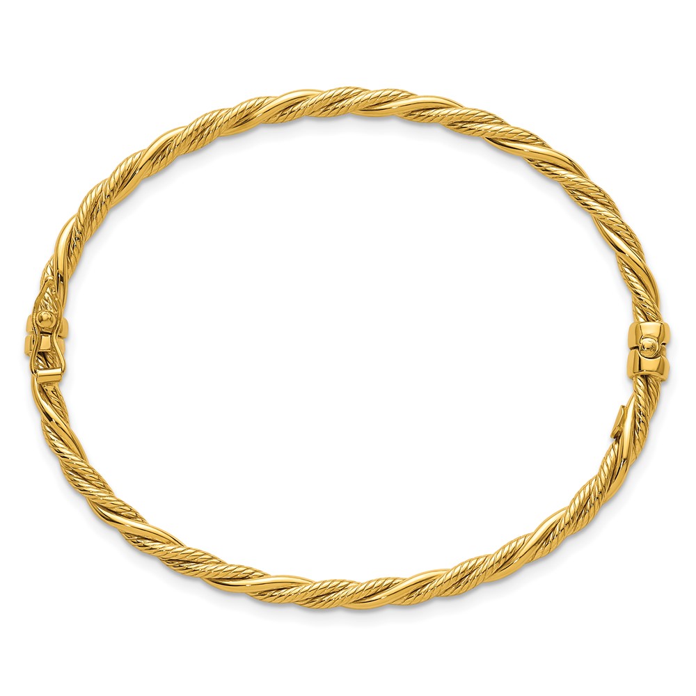 14K Polished and Textured 3.25mm Twisted Hinged Oval Bangle Bracelet