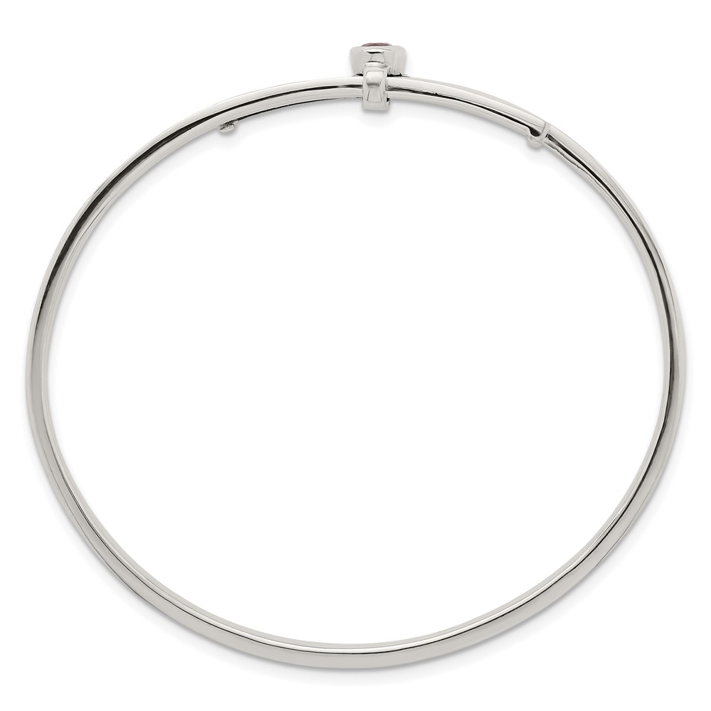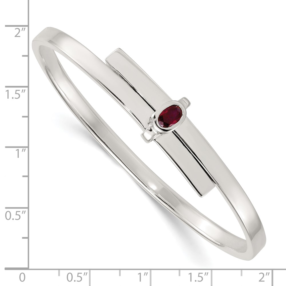 Sterling Silver Polished Oval Red CZ Slip On Expandable Bangle