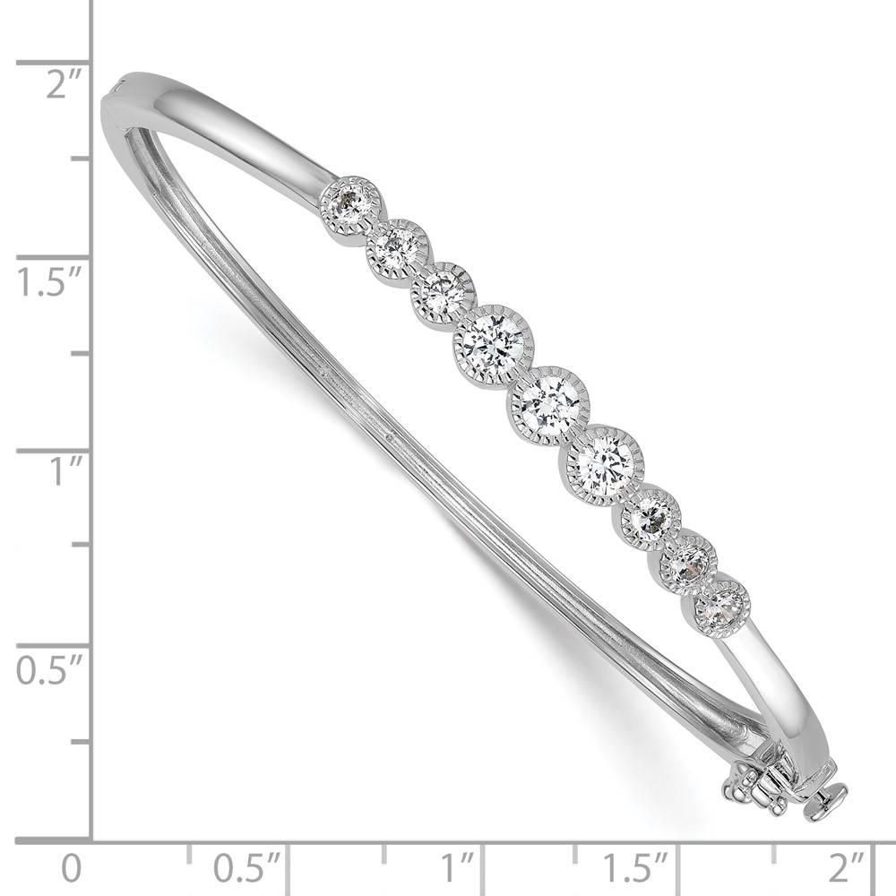 Sterling Silver Rhodium-plated Polished and Textured Bezel-set Graduated CZ Hinged Bangle