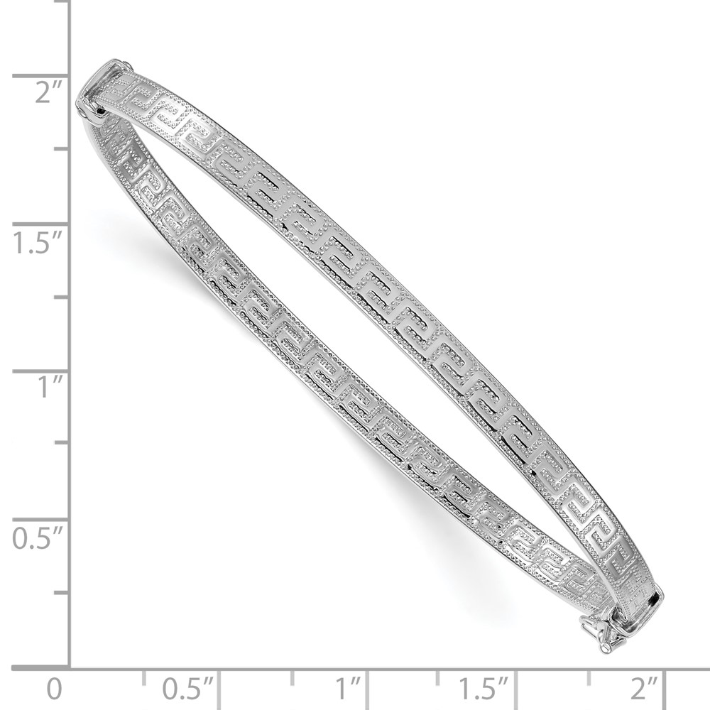 Sterling Silver Rhodium-plated Polished Textured Greek Key 4.00mm Hinged Bangle