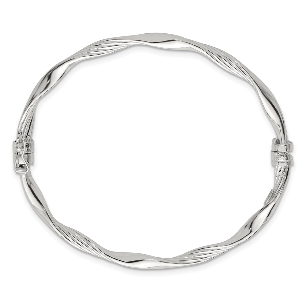 Sterling Silver Polished and Textured Twisted 4.00mm Hinged Bangle
