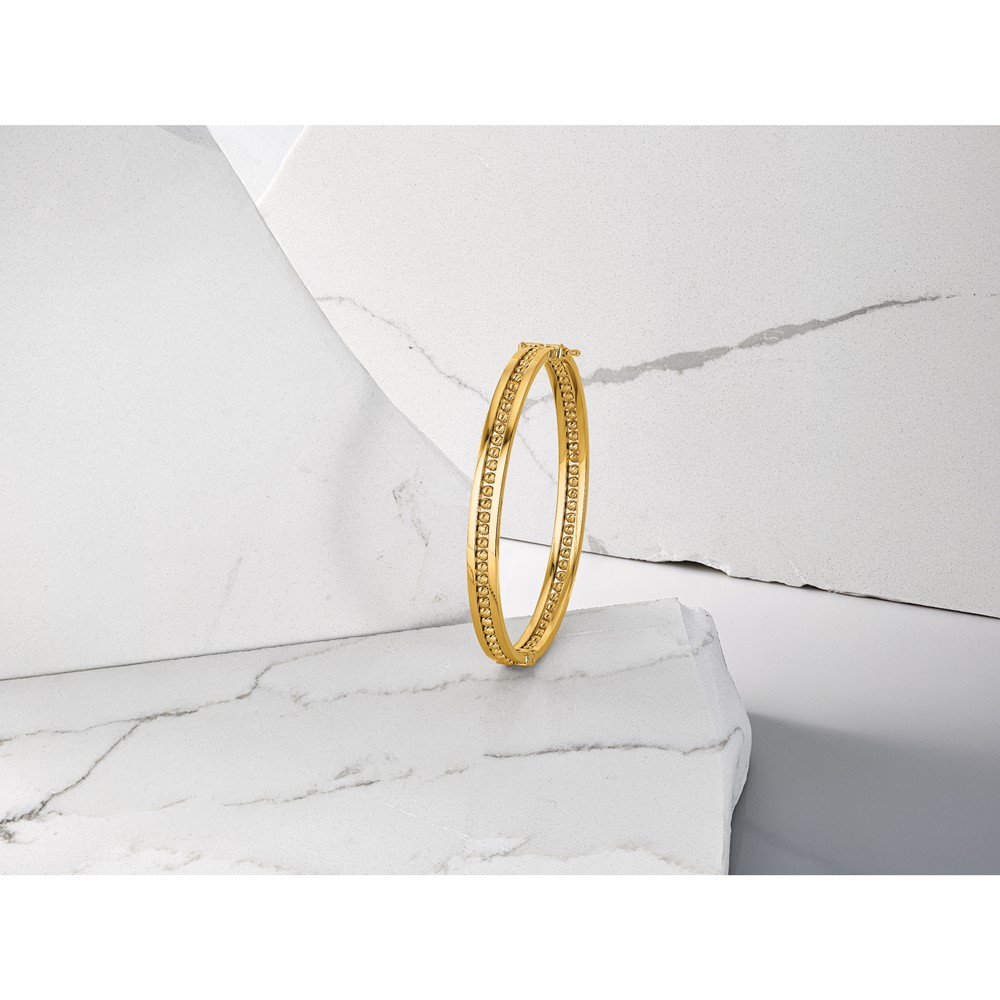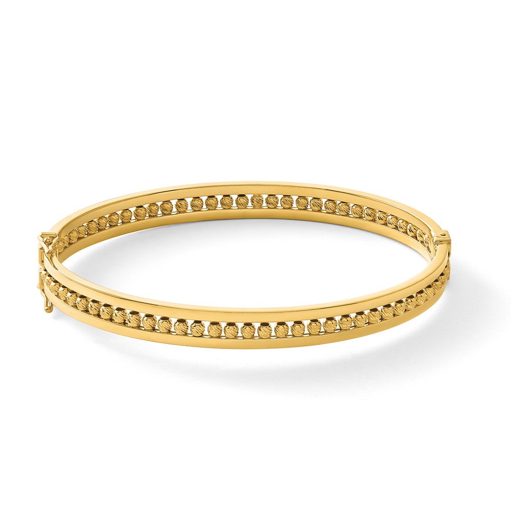 Leslie's 14K Polished and Diamond-cut Beaded Hinged Bangle