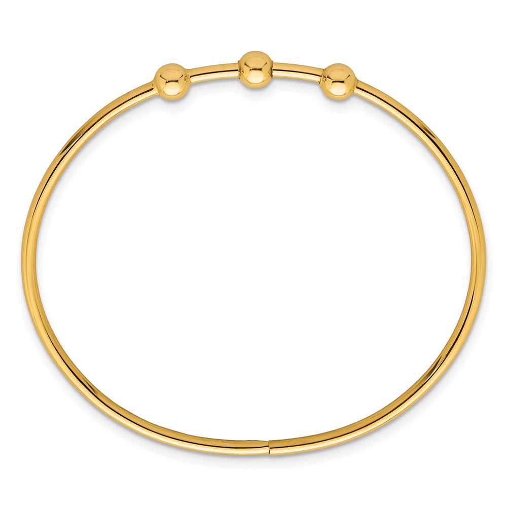 Herco 14K Polished 3 Bead Flexible with Hidden Clasp Bangle