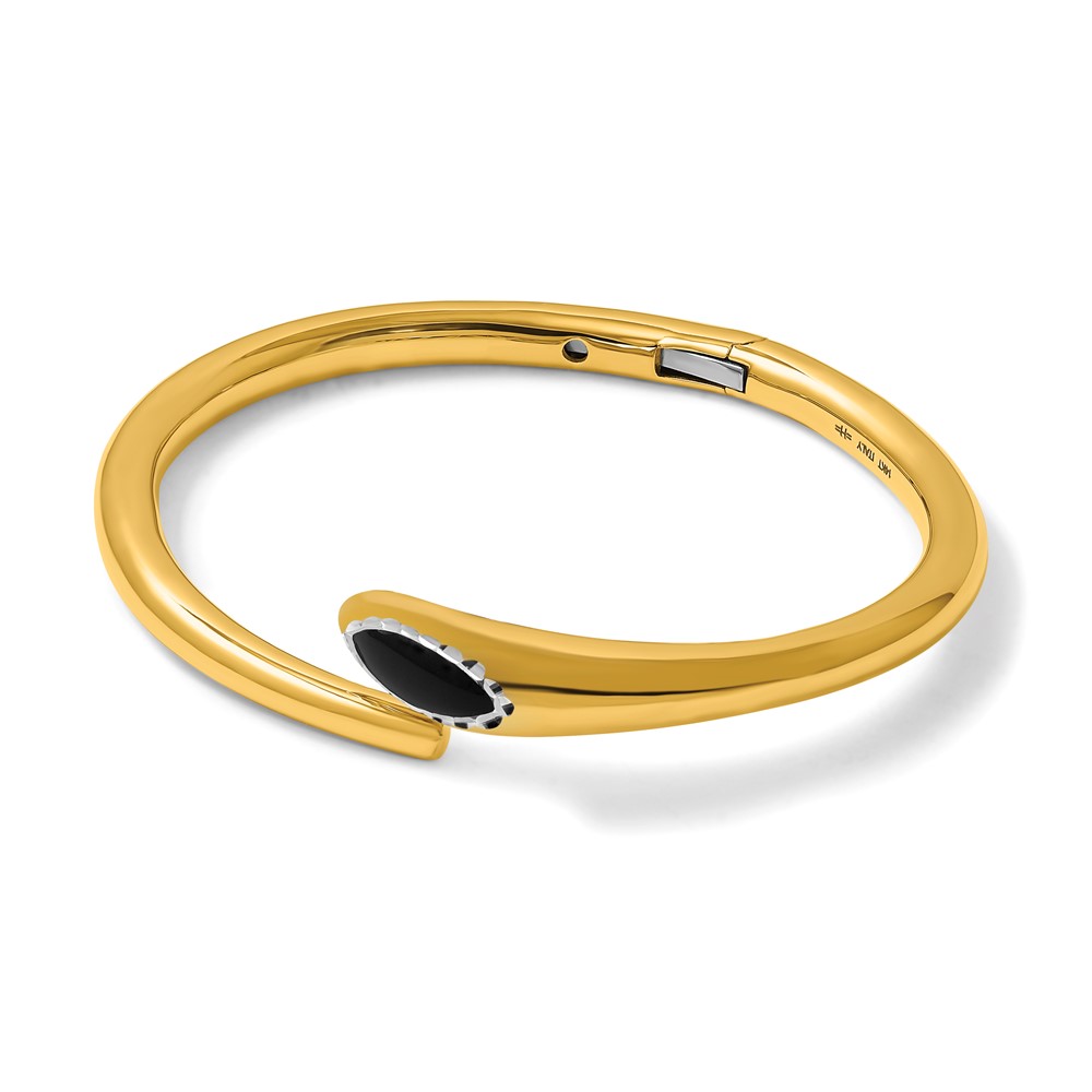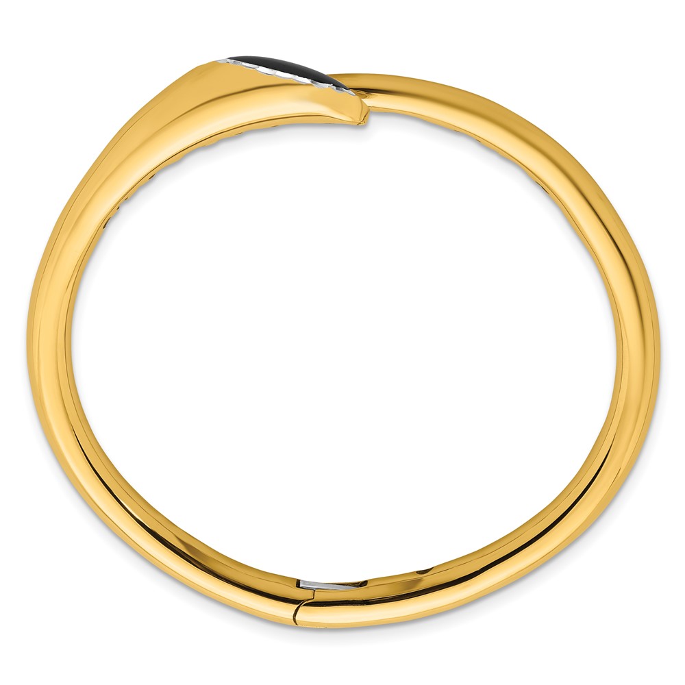 Herco 14K Polished with Rhodium Diamond-cut and Black Enamel Bypass Hinged Bangle