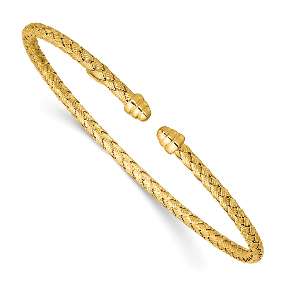 Herco 18K Polished 2.7mm Braided Weave Flexible Cuff Bracelet