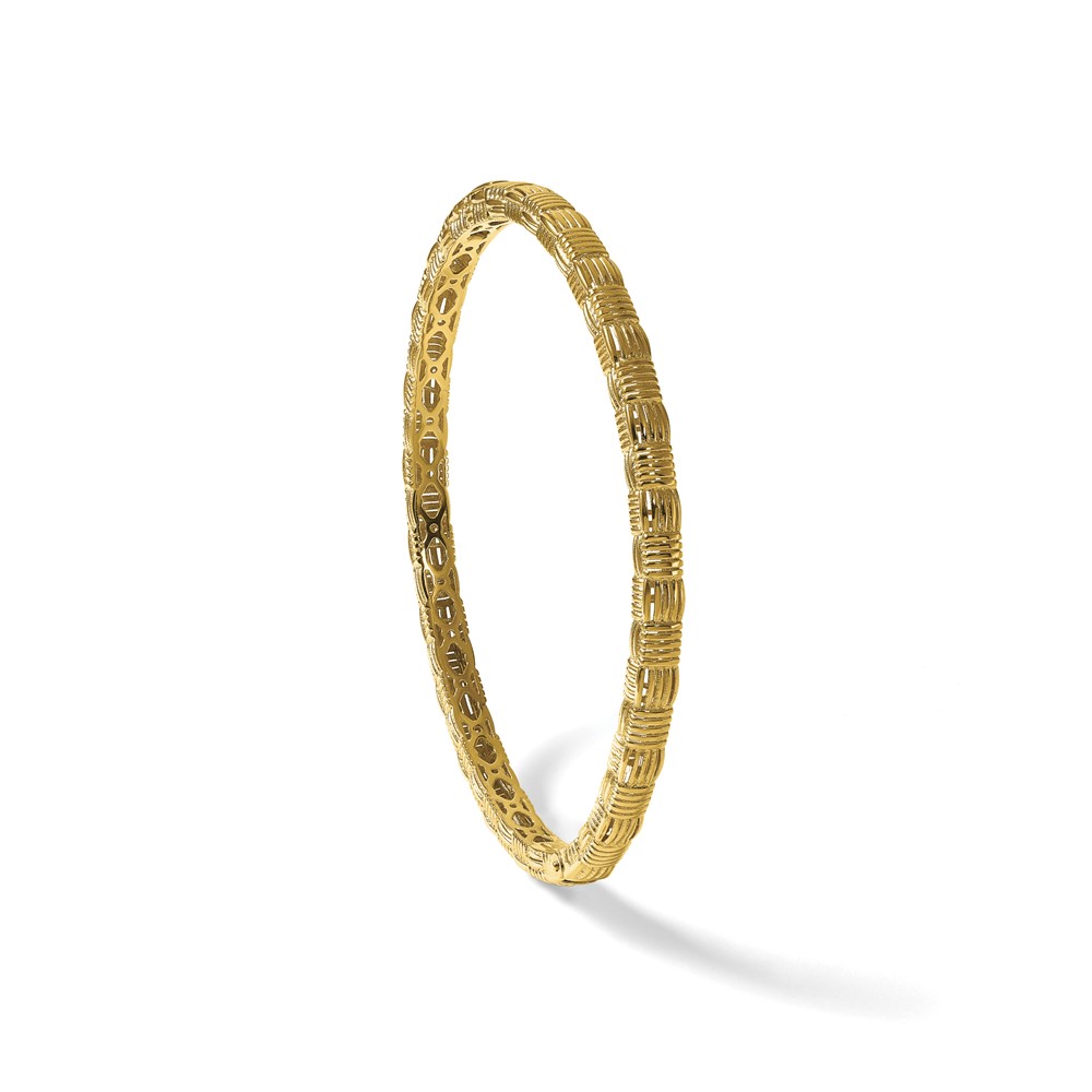 Herco 14K Polished Checkered Weave Pattern 4.3mm Hinged Bangle