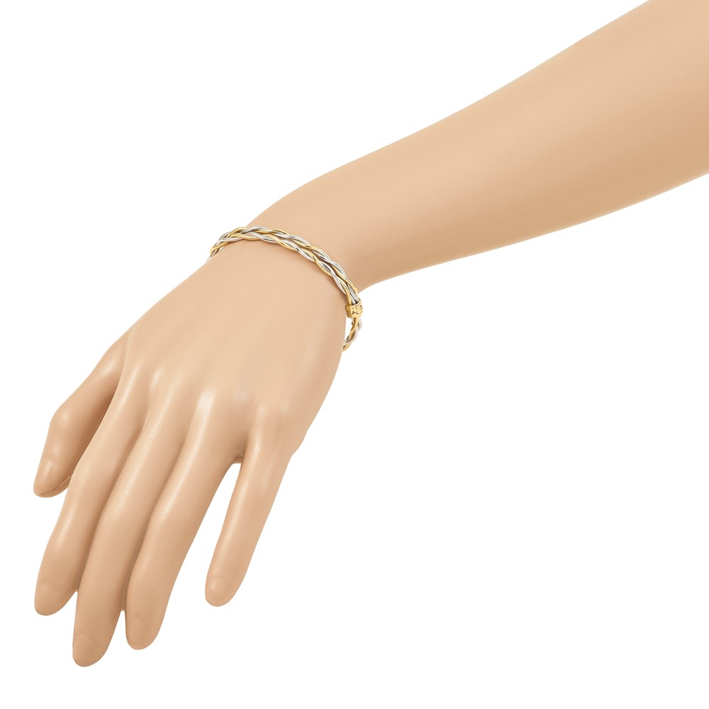 Leslie's 14K w/Rhodium Polished Double Row Twisted Hinged Bangle
