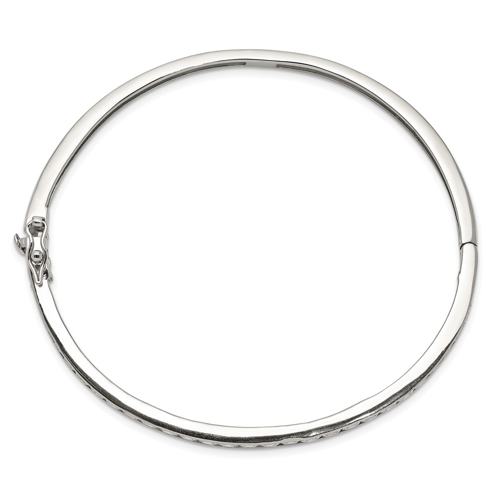 Sterling Silver Rhodium-plated CZ Hinged Bangle Bracelet