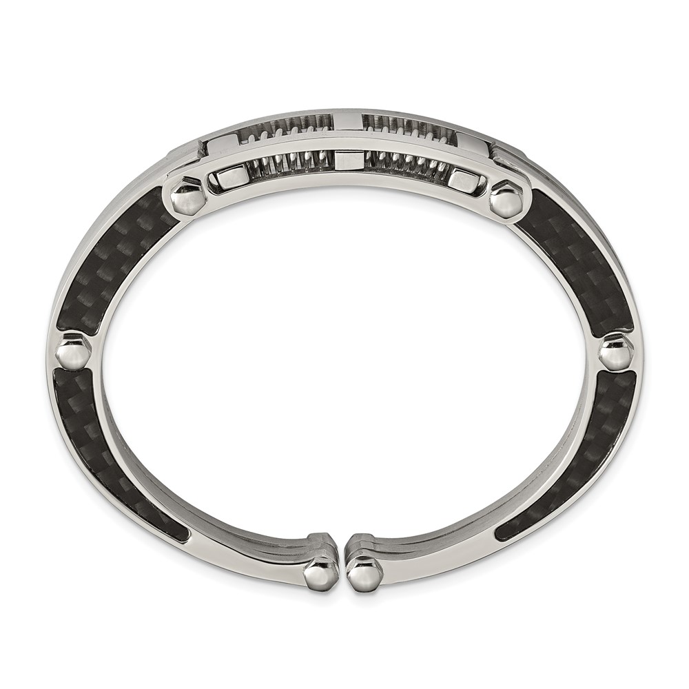 Chisel Stainless Steel Brushed and Polished with Black Carbon Fiber Inlay Hinged Bangle