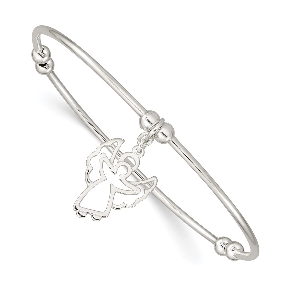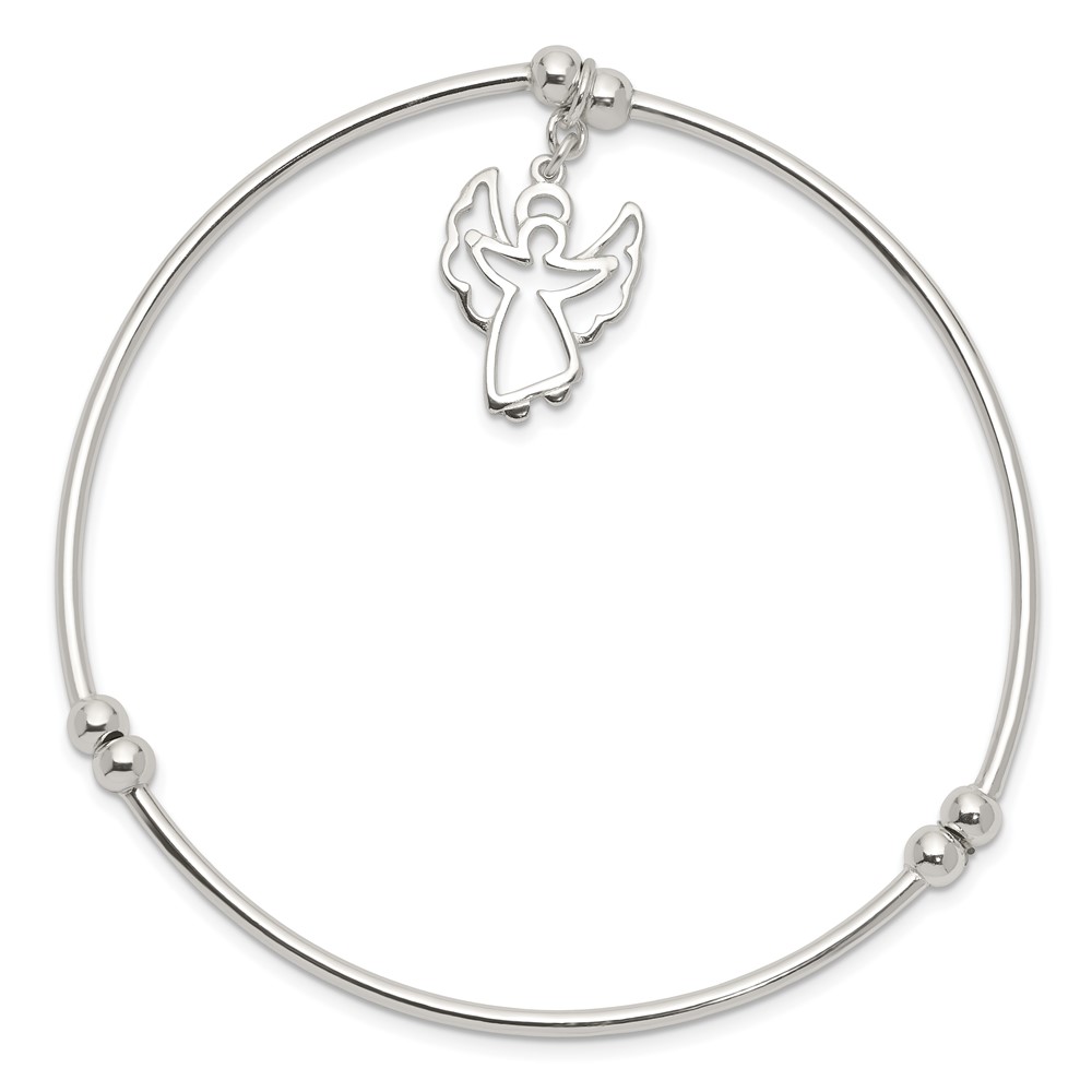Sterling Silver Rhodium-plated Bead w/Angel Stretch Bangle Bracelet