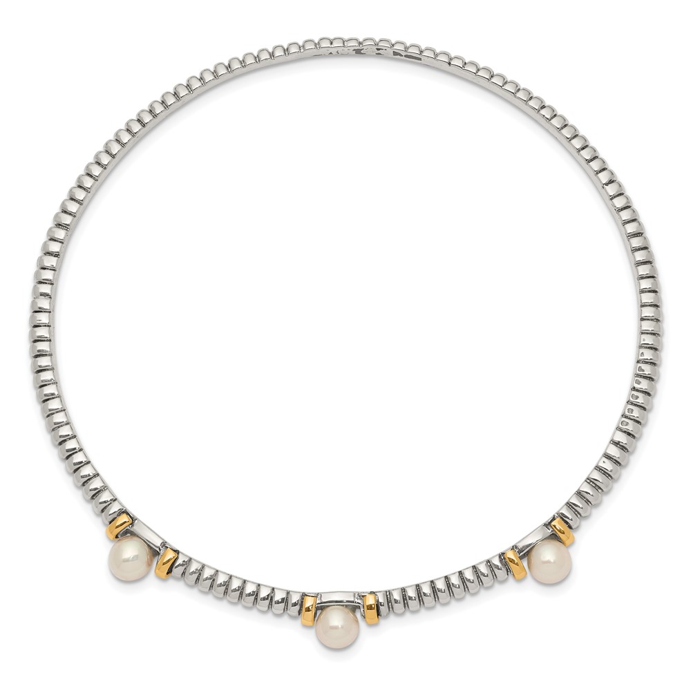Shey Couture Sterling Silver with 14K Accent 4.5mm Freshwater Cultured Button Pearl Slip-on Bangle Bracelet