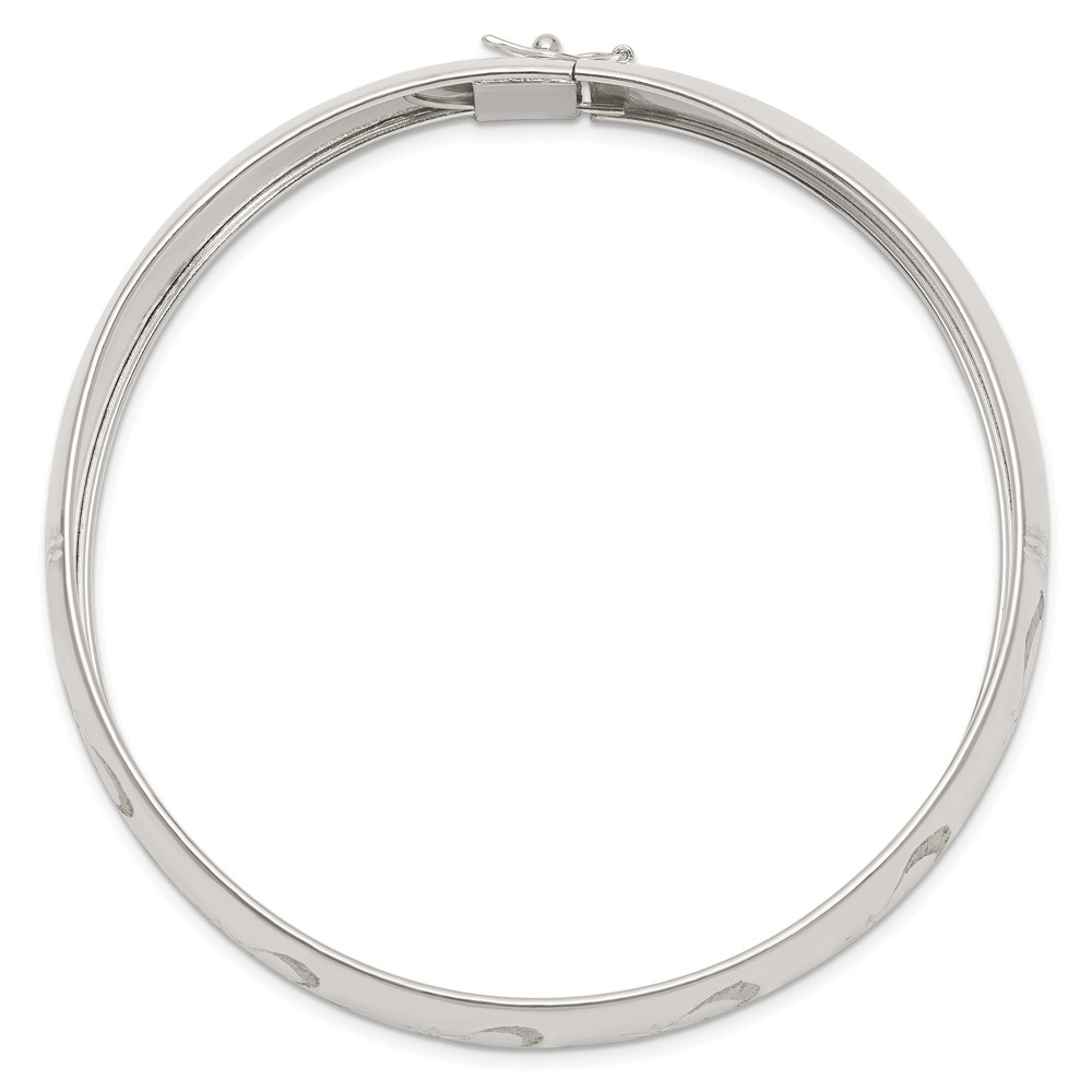 Sterling Silver Polished D/C and Textured Adjustable Bangle
