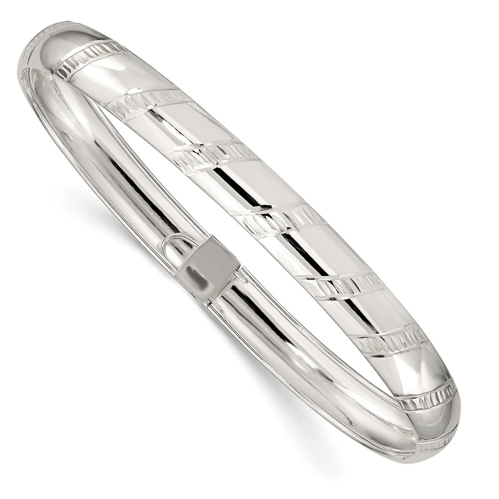 Sterling Silver 7mm Diamond-cut Flexible Bangle