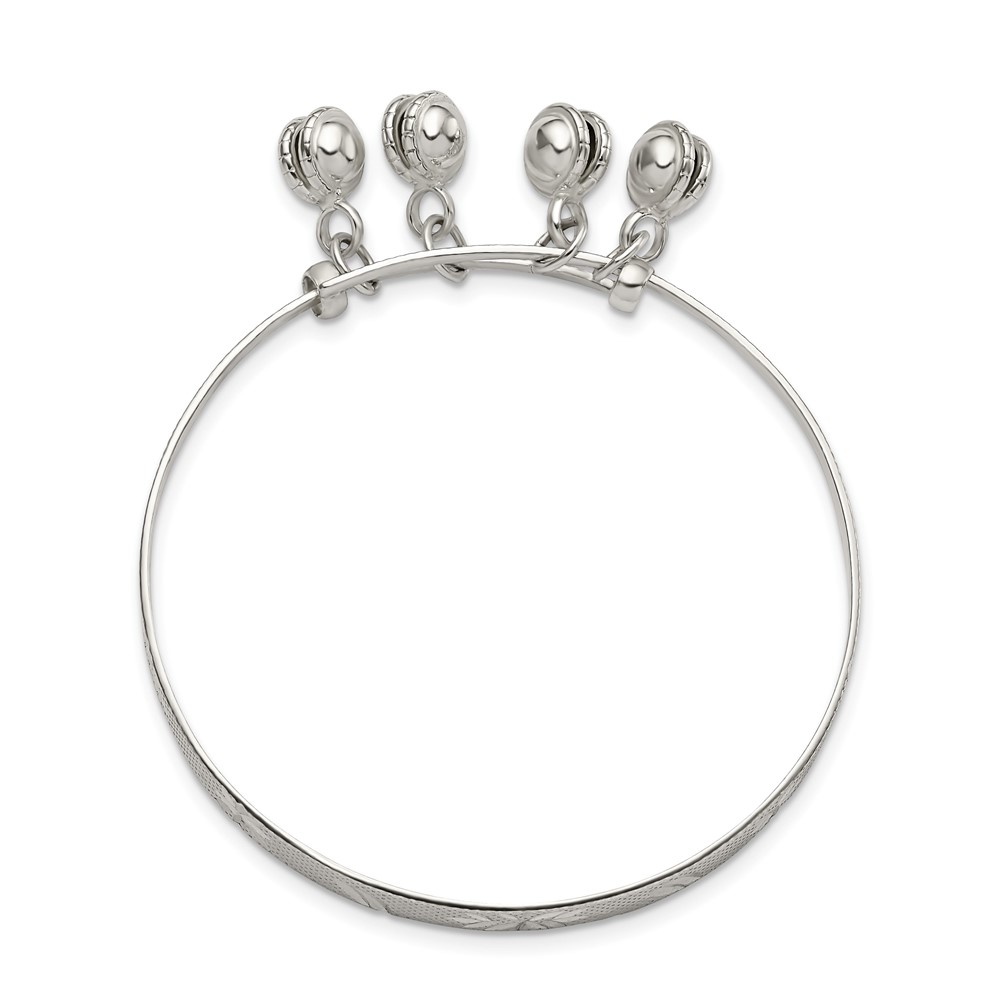Sterling Silver D/C & Textured Bells Adjustable Children's Bangle Bracelet