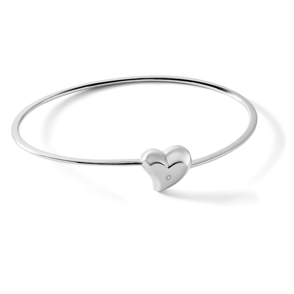 White Ice Sterling Silver Rhodium-plated Satin and Polished Diamond Heart Bangle
