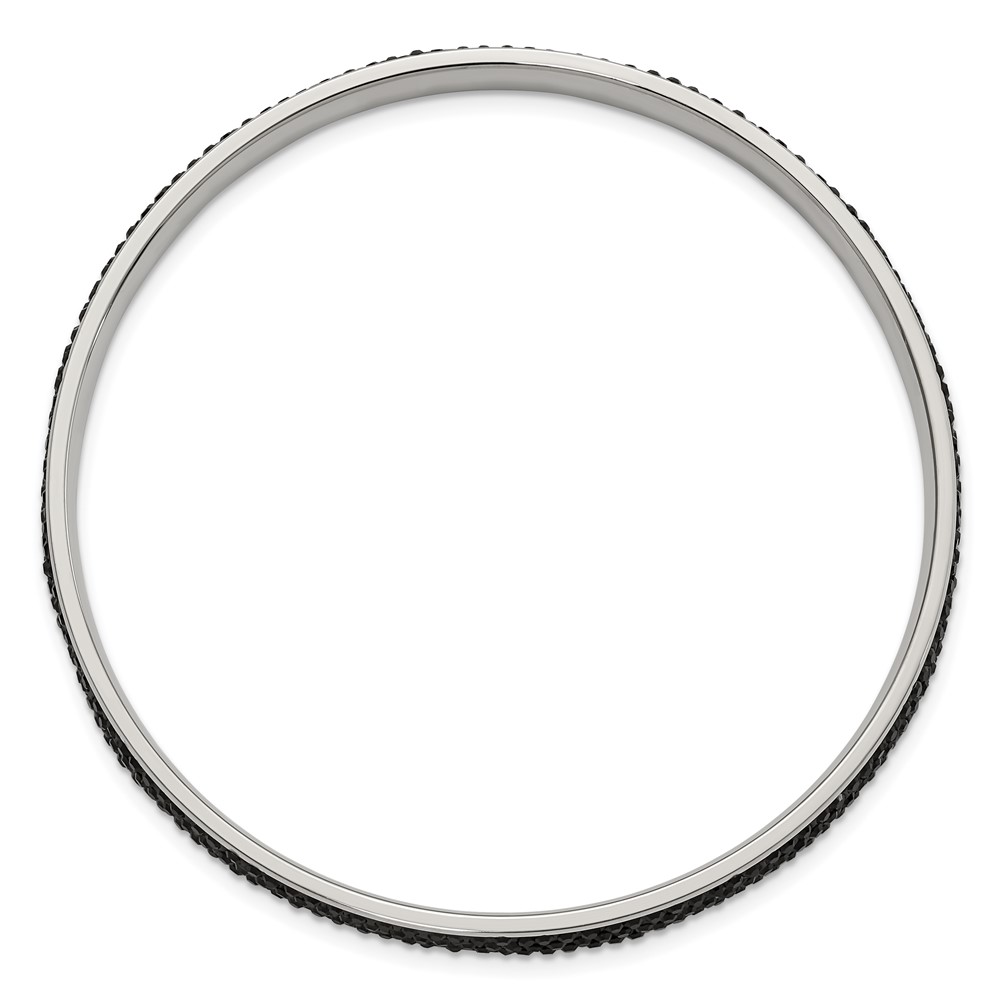 Stainless Steel Polished Black Crystal Rounded Bangle
