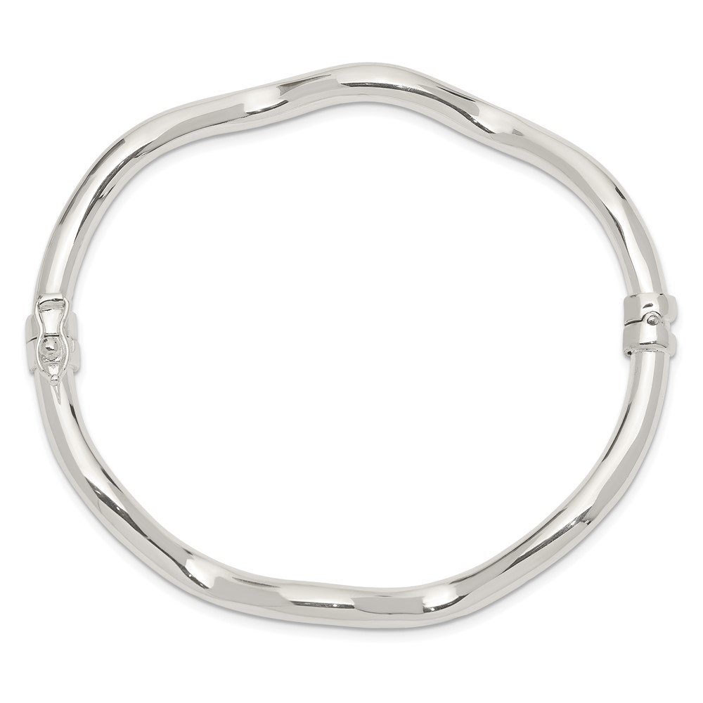 Sterling Silver Polished Wavy Hinged Bangle