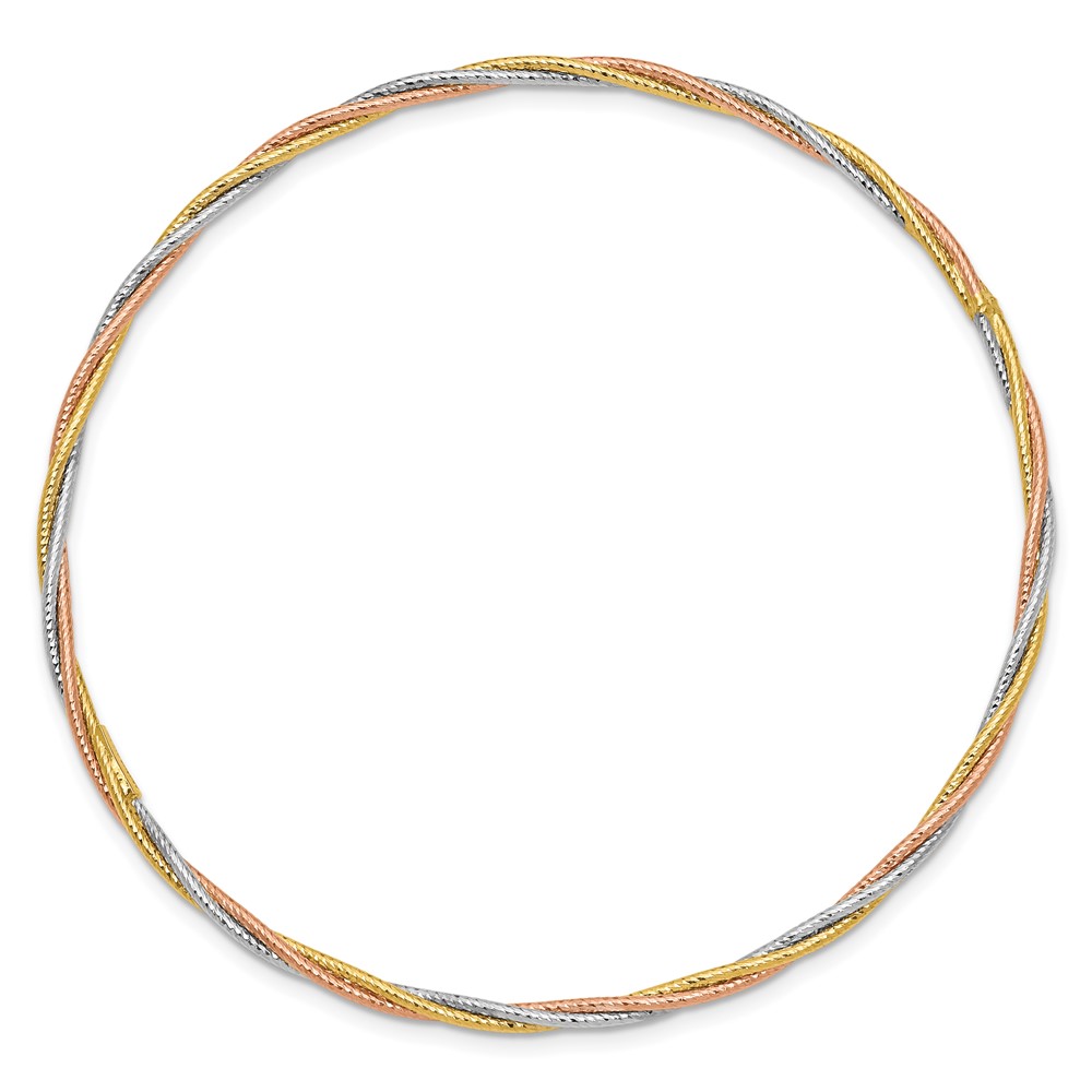 14k Tri-color Polished Diamond-cut Twisted 2.00mm Slip-on Round Bangle Bracelet