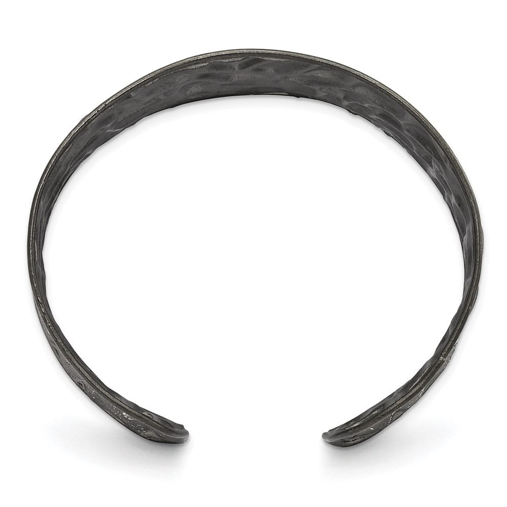 Leslie's Sterling Silver Black Ruthenium Textured Sparkle Cuff Bangle