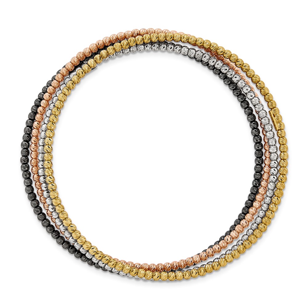 Sterling Silver D/C 4 piece & Color (RH, Y, P, BL) Bangle Set