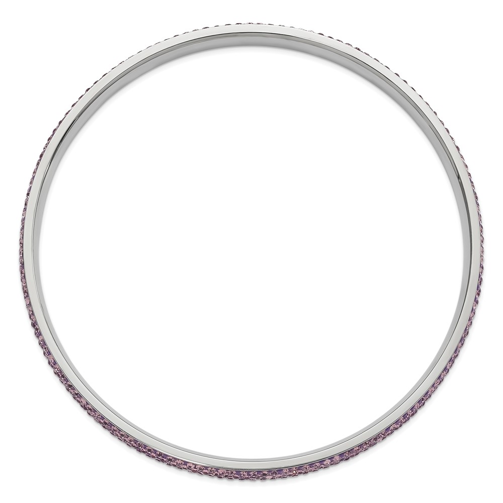 Stainless Steel Polished Light Purple Crystal Rounded Bangle
