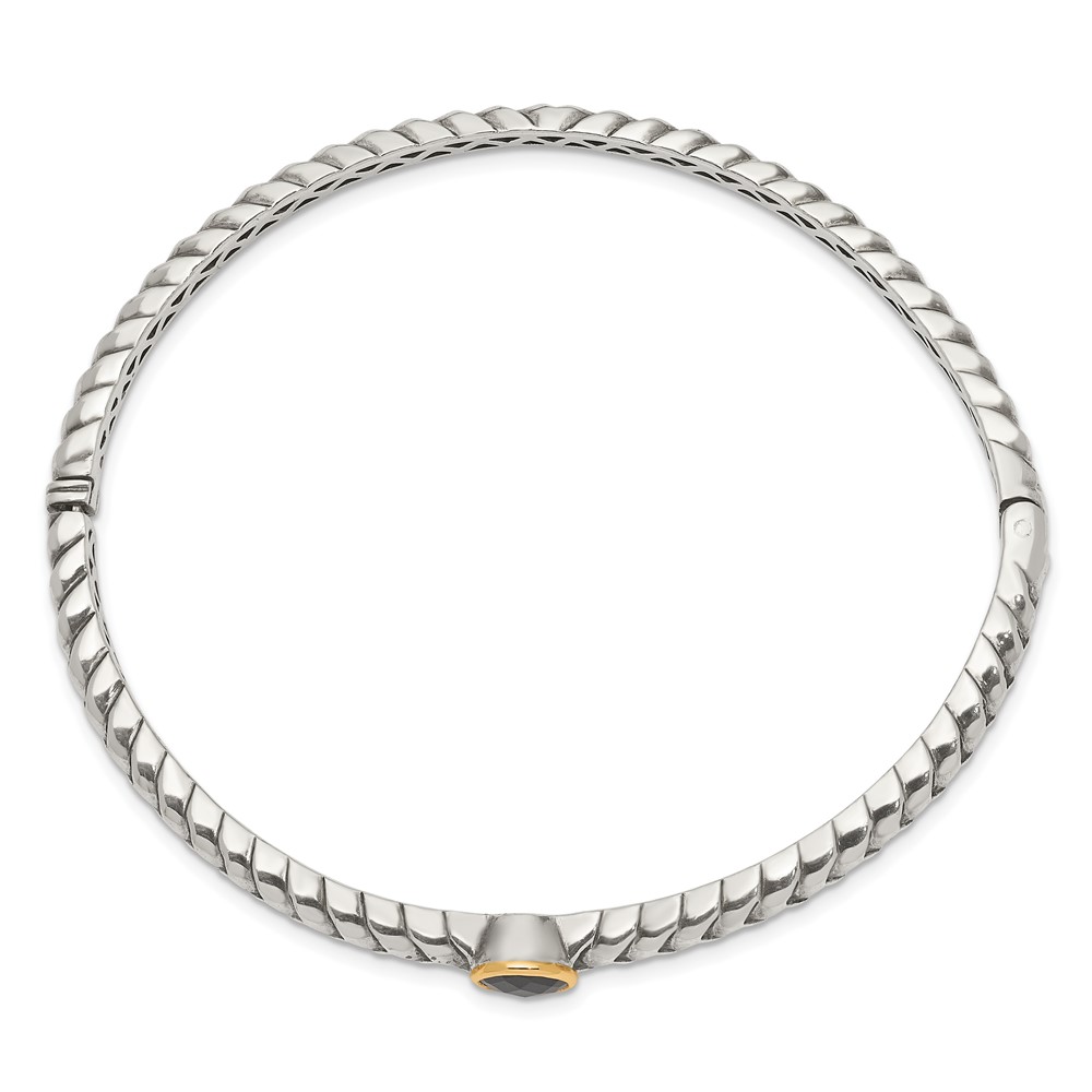 Shey Couture Sterling Silver with 14K Accent Antiqued Checkerboard-cut Black Onyx Hinged Bangle Bracelet