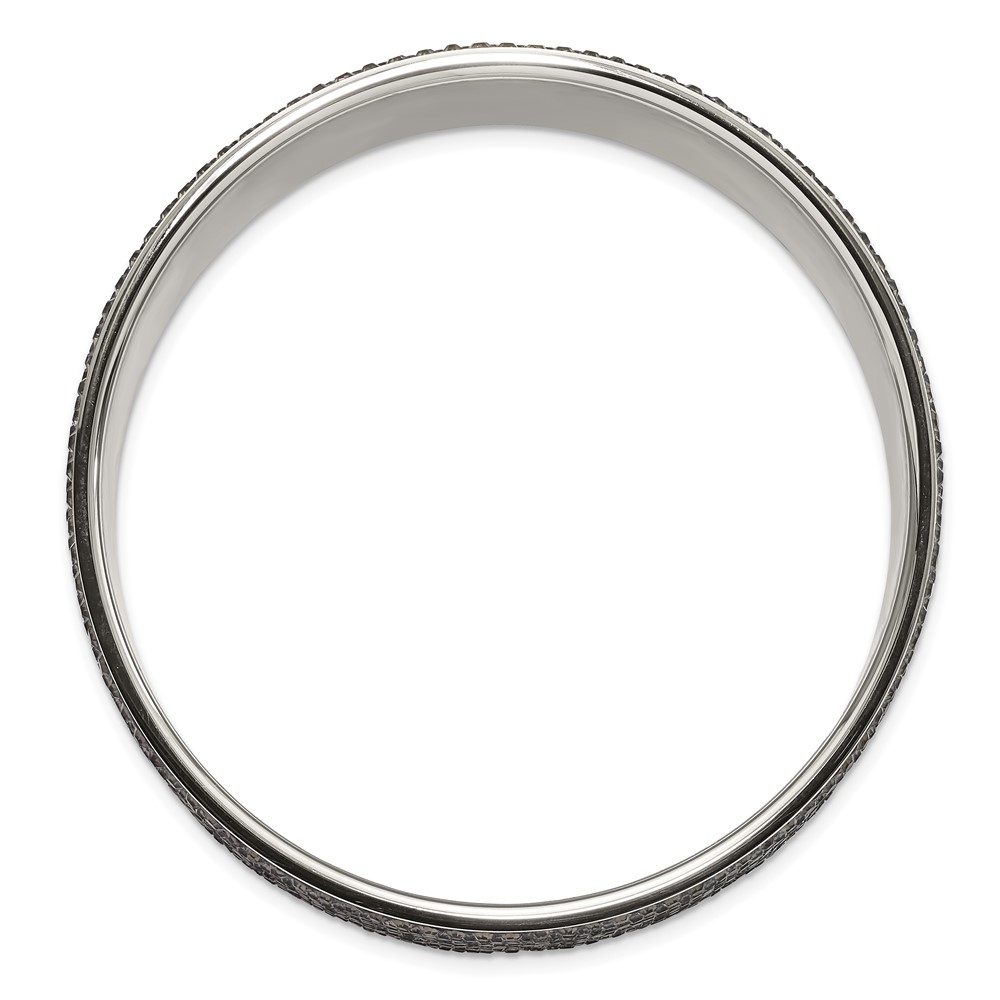 Stainless Steel Polished & Brushed Grey Crystal Wide Flat Bangle