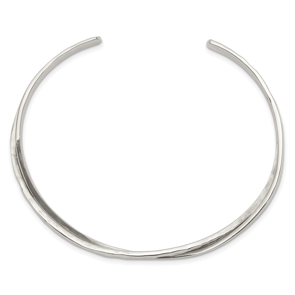Sterling Silver Rhod-plated Plain 3mm Hammered Bands Bangle