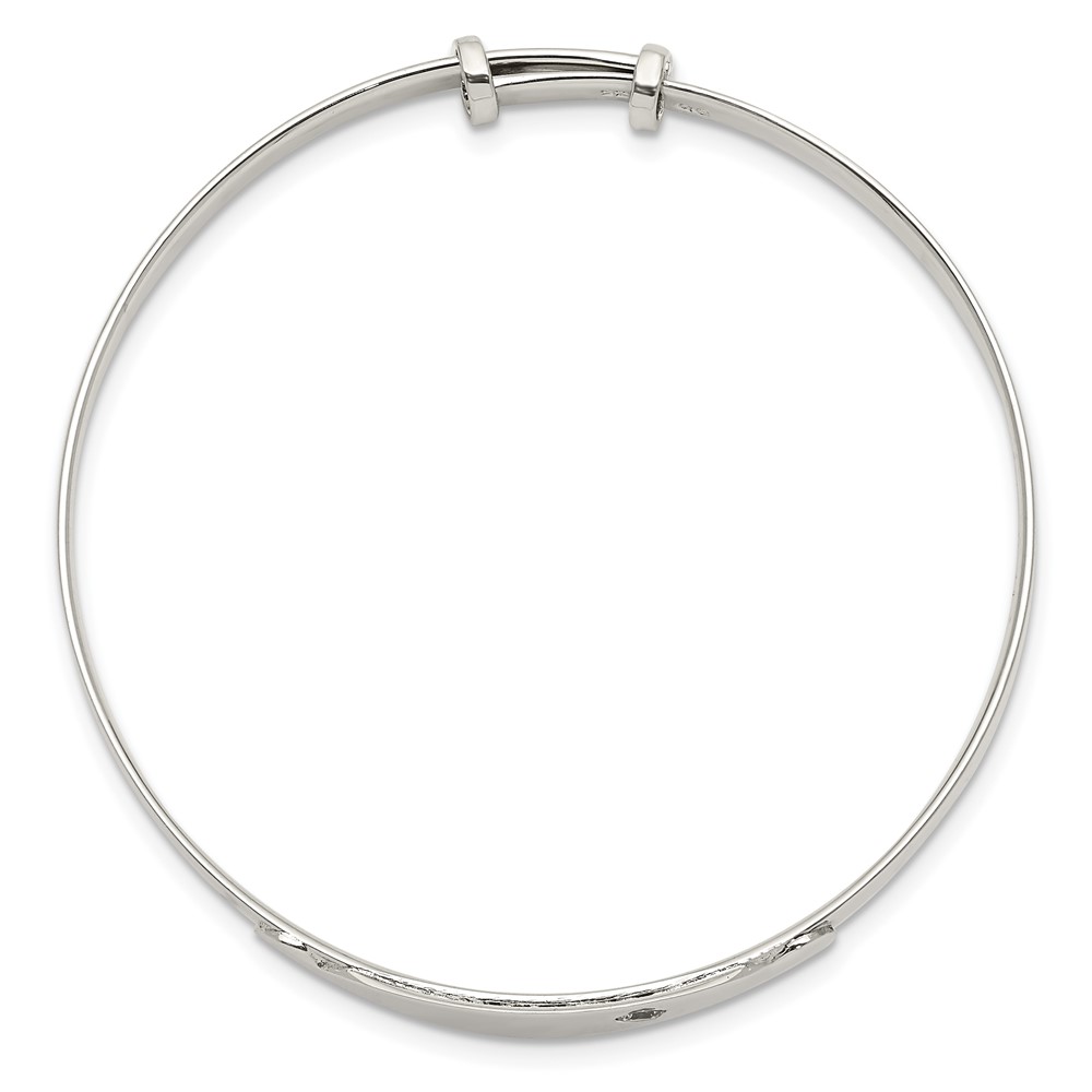 Sterling Silver Polished CZ ID Adjustable Baby Bangle Bracelet