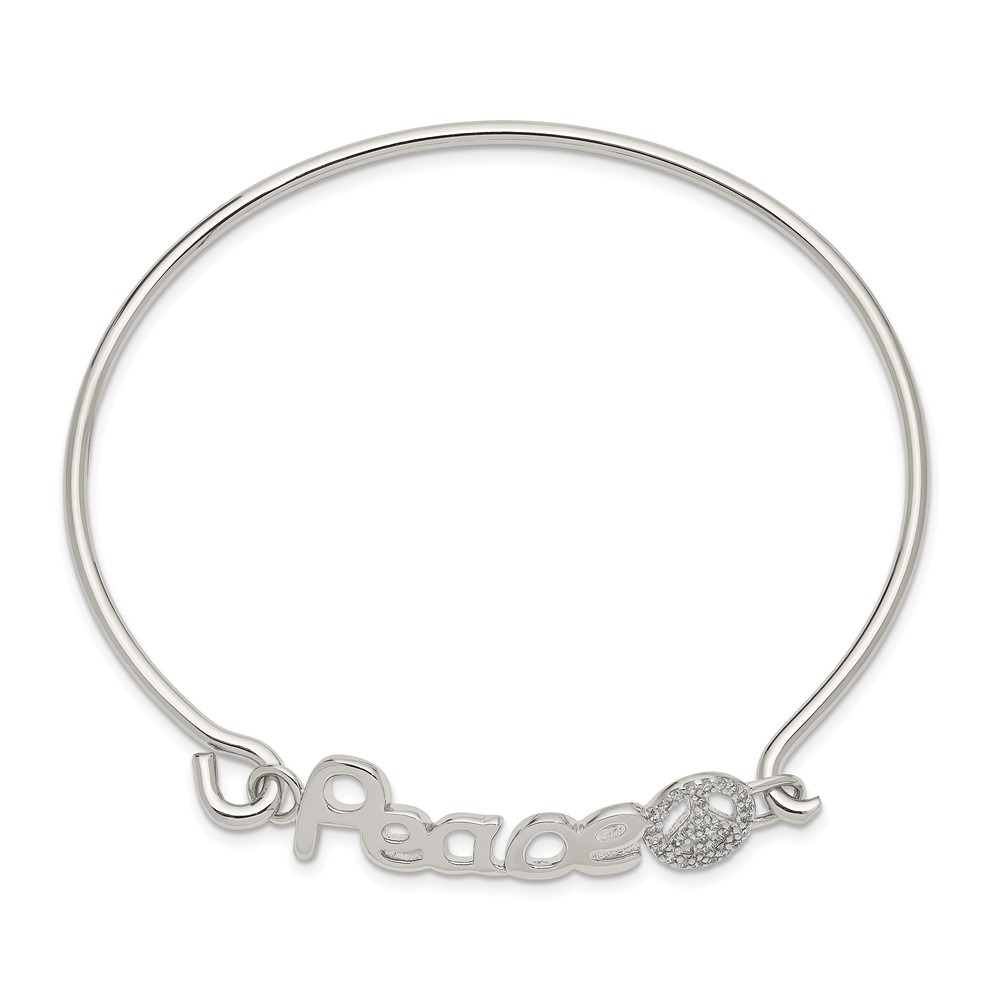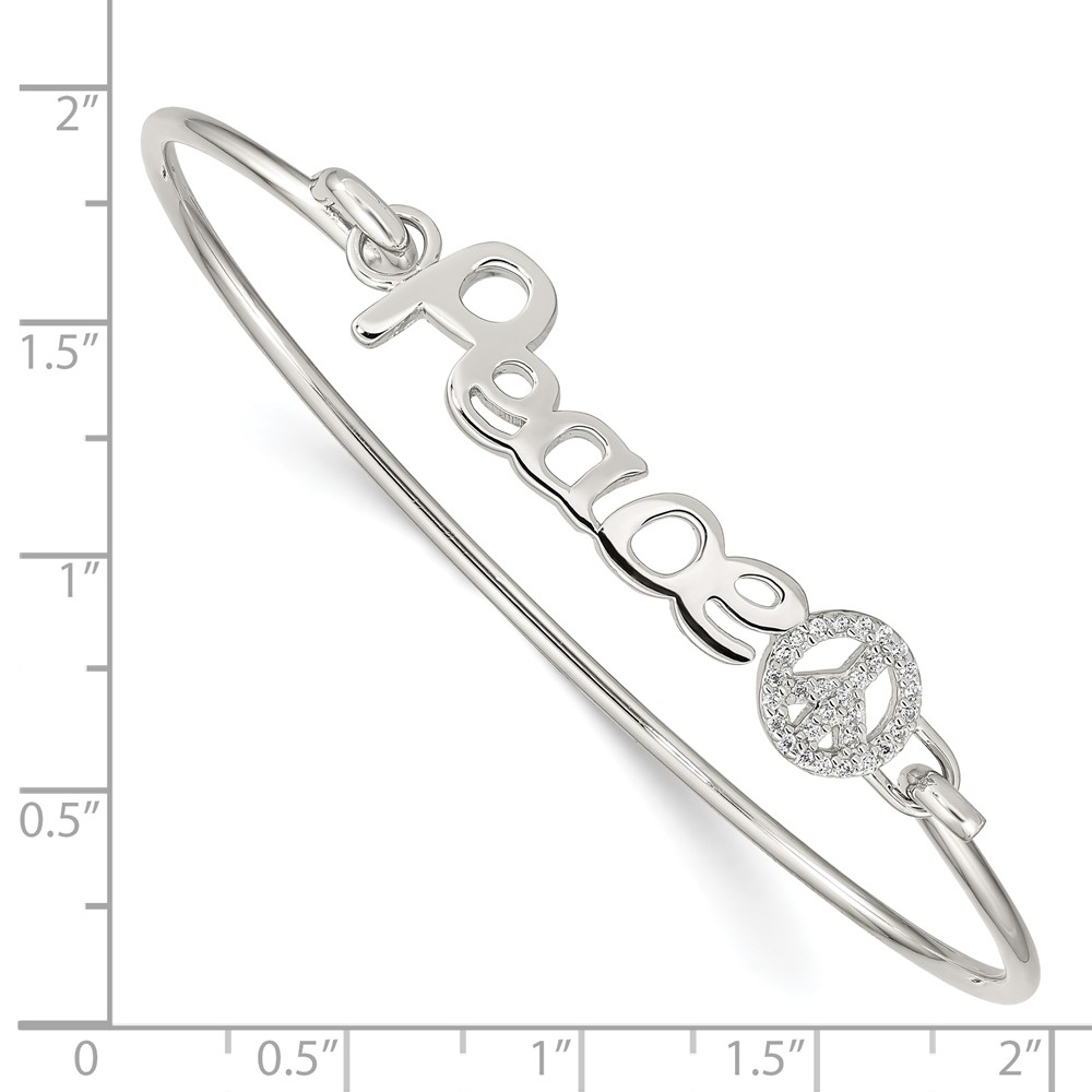 Sterling Silver Rhod-plated Polished CZ PEACE with Peace Sign Bangle