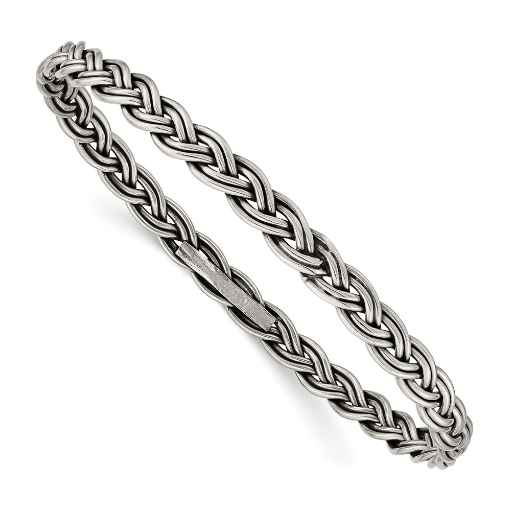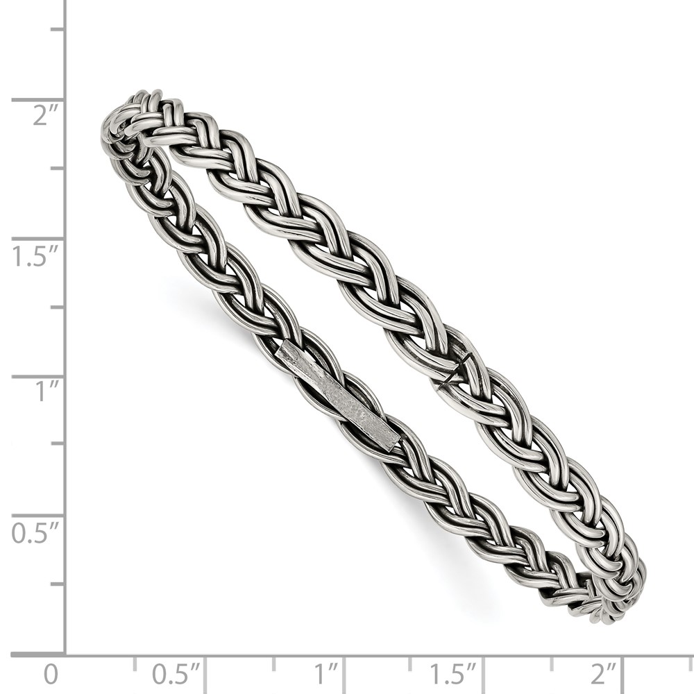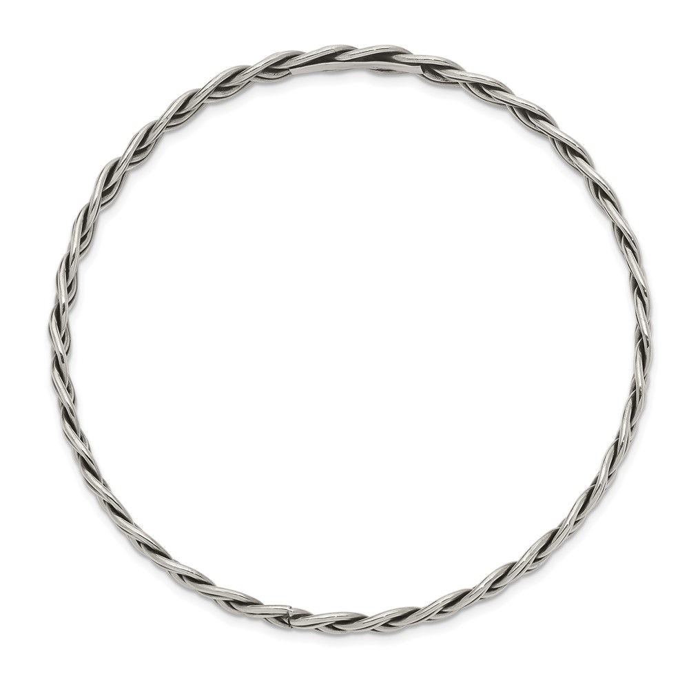 Sterling Silver Rhodium-plated Polished and Textured Larimar Cabochon Flexible Bangle