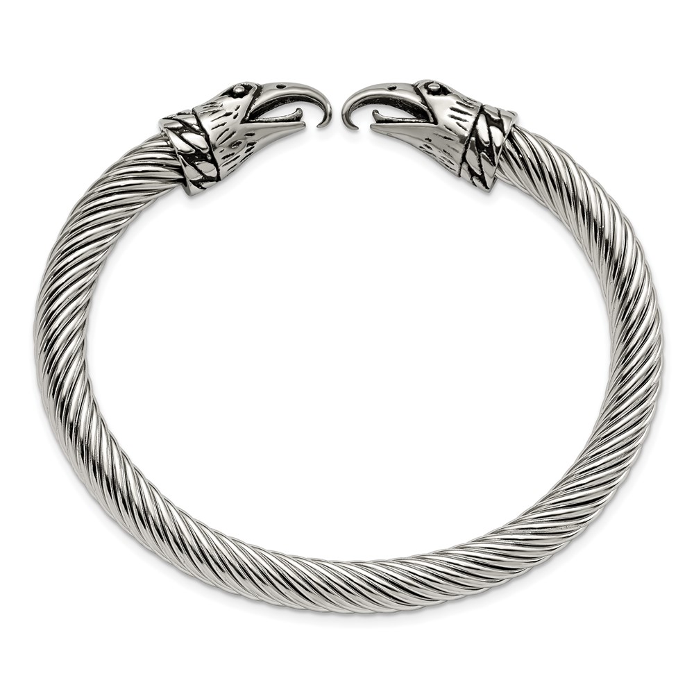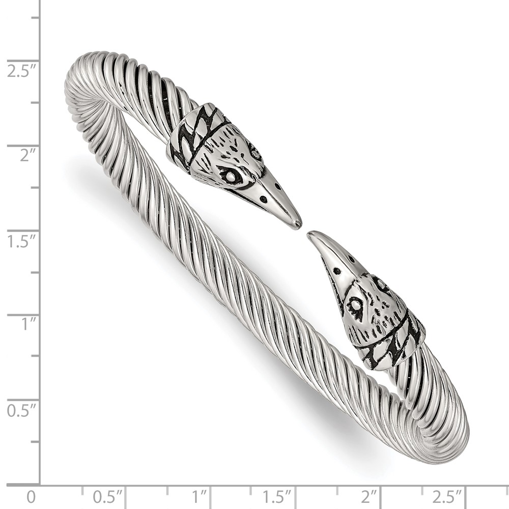 Stainless Steel Antiqued and Polished Eagle Cuff Bangle