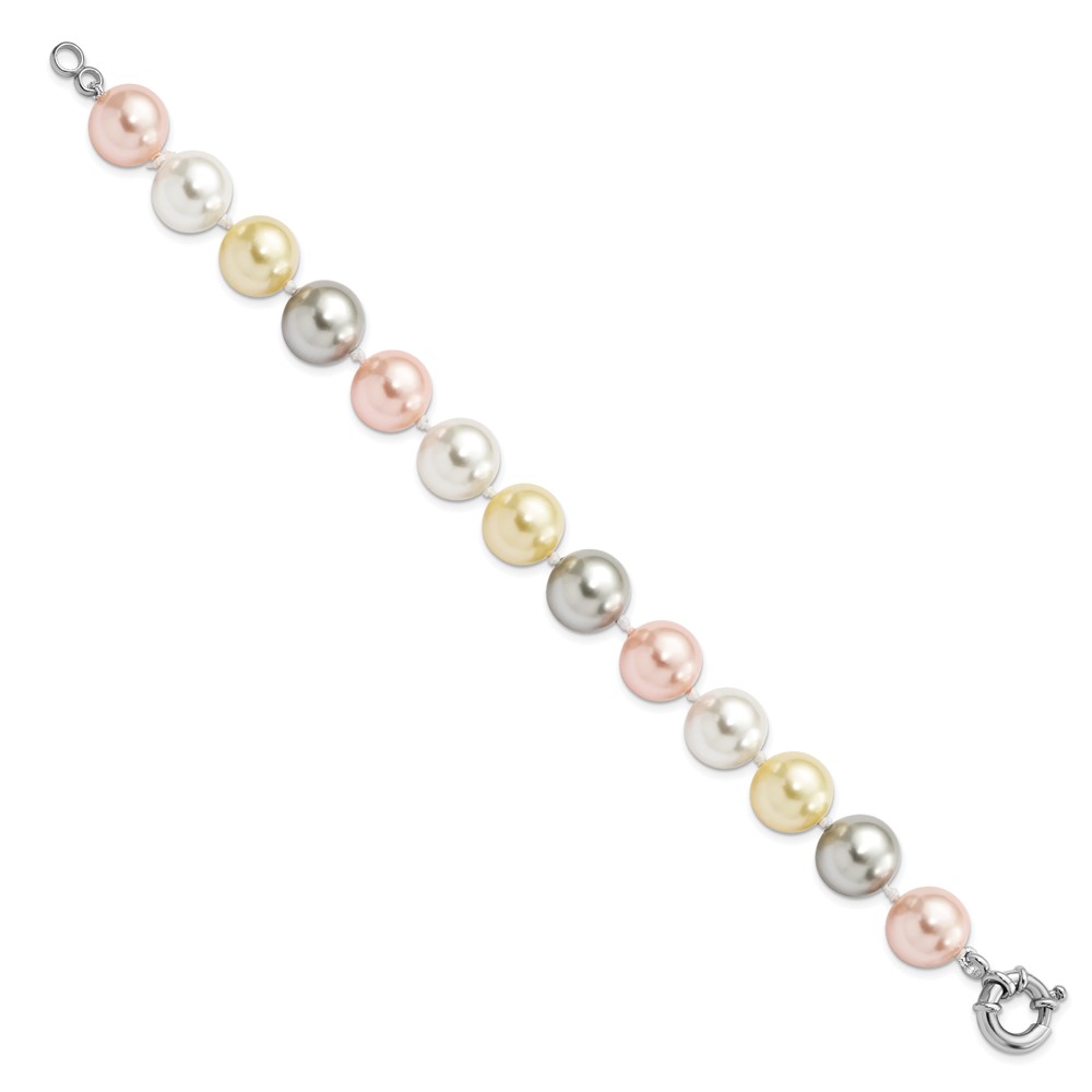 Majestik Sterling Silver Rhodium-plated 12-13mm Multi-Color Imitation Shell Pearl Hand-knotted Bracelet