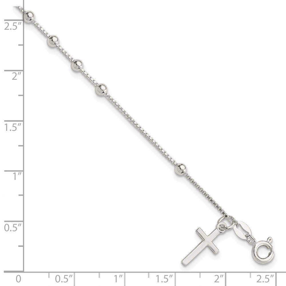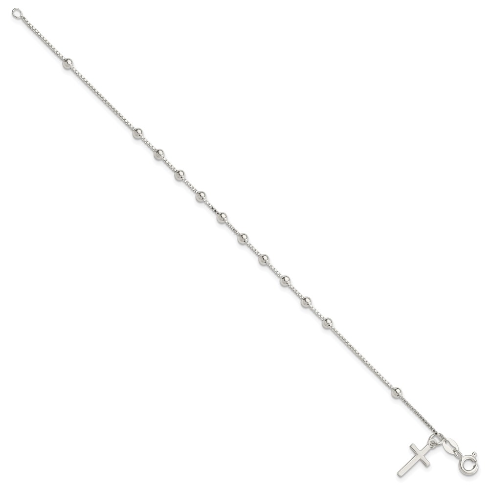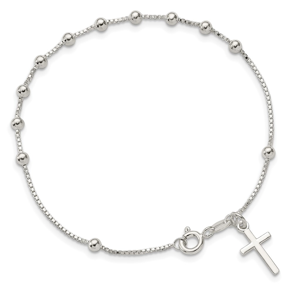 Sterling Silver Polished Beaded Cross 7.25in Bracelet