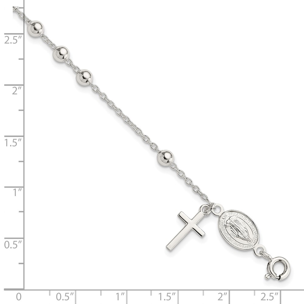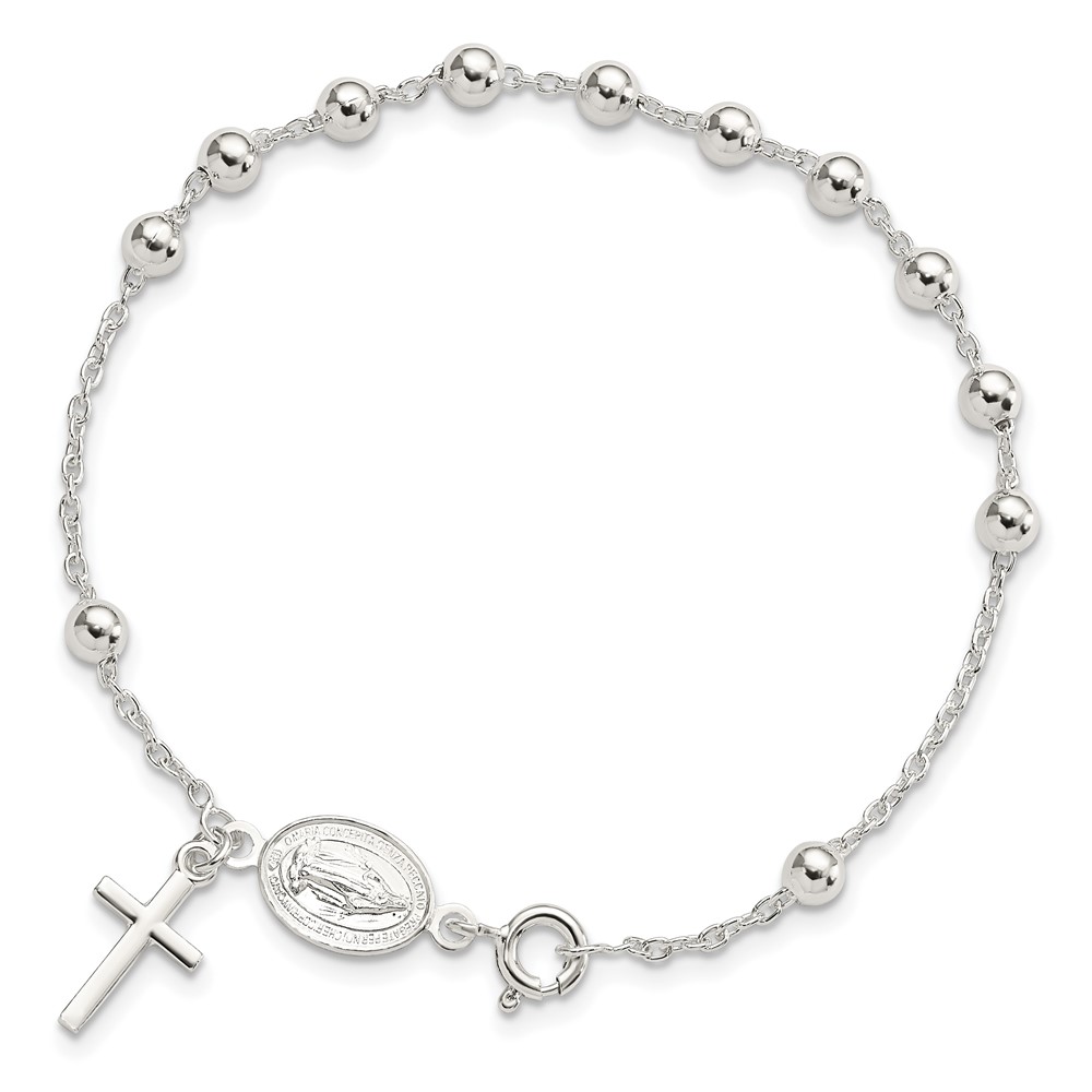Sterling Silver Beaded Polished Rosary 7.5 inch Bracelet