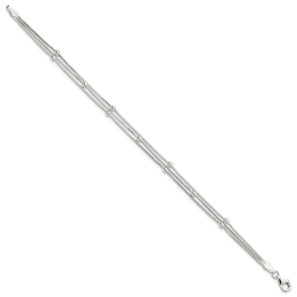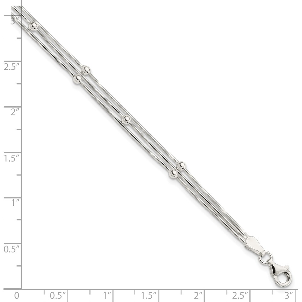 Sterling Silver Polished 3-strand Beaded 7.5 inch Bracelet