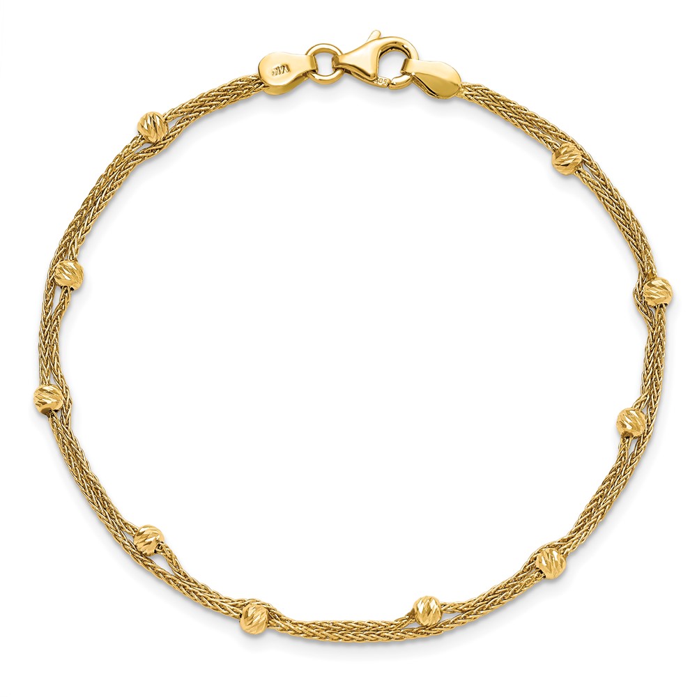Leslie's 14K Gold Polished and Diamond-cut Beads 2 Strand Bracelet