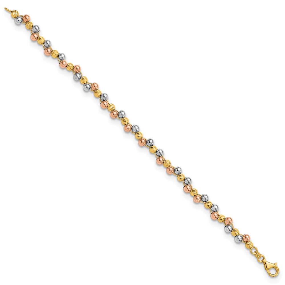 14K Tri Color Polished and D/C Beaded Bracelet