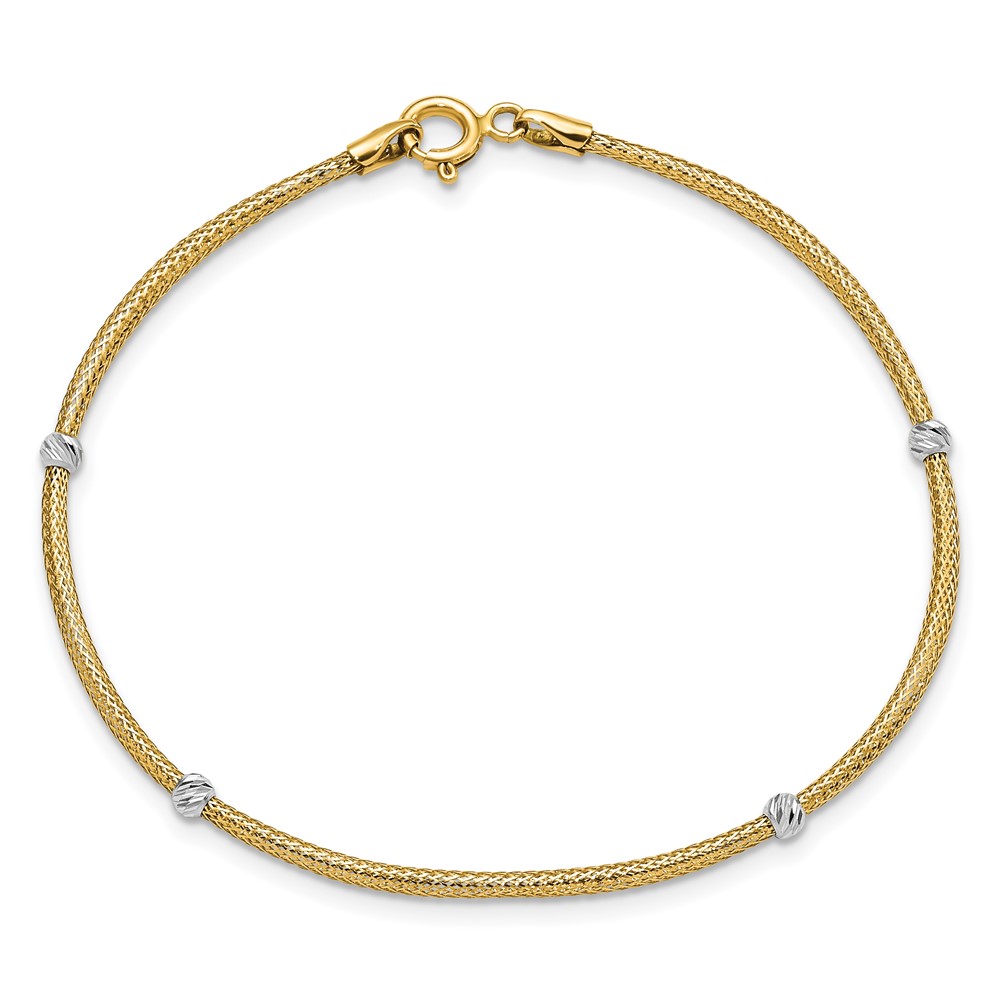 14K with White Rhodium Woven Flexible Diamond-cut Moveable Beads 7.25 inch Bracelet