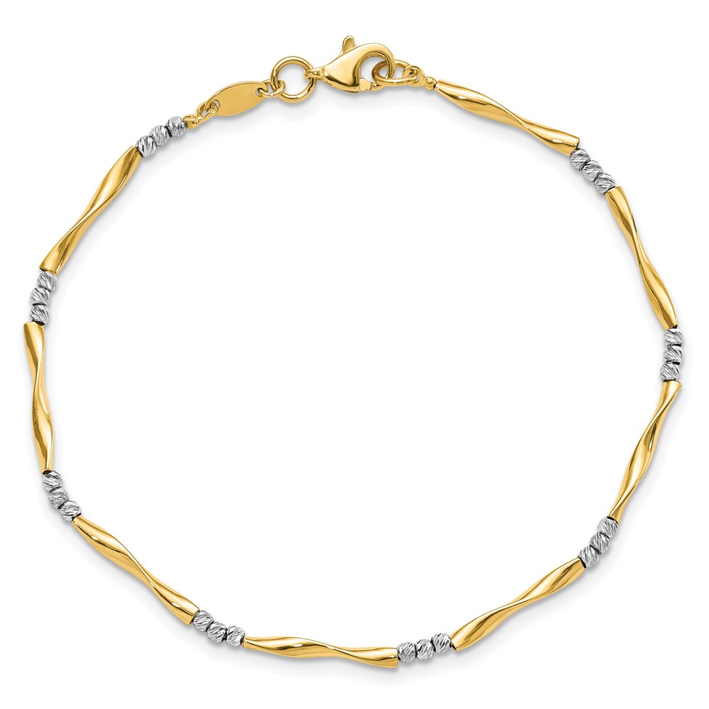 14K Two-tone Diamond-Cut Wavy and Beaded 7.5in Bracelet