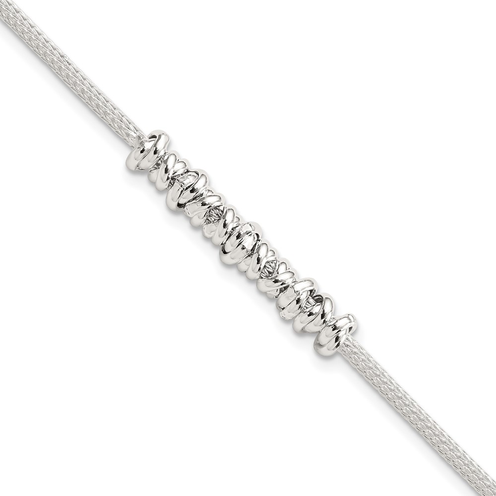 Sterling Silver Polished Beaded w/ 1in ext Bracelet