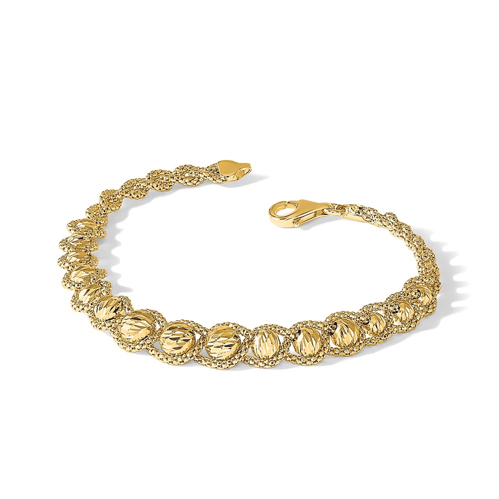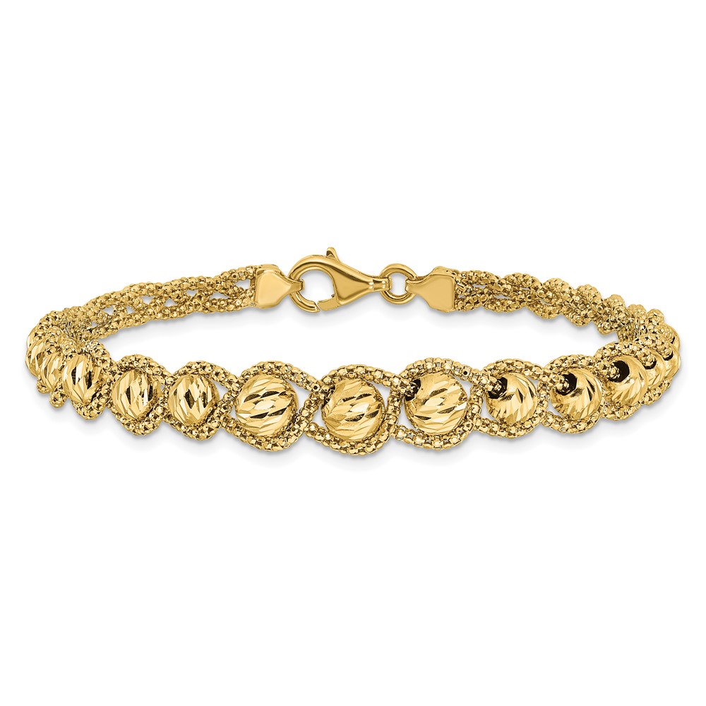Leslie's 14K Polished Textured and Diamond-cut Beaded Bracelet